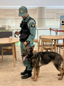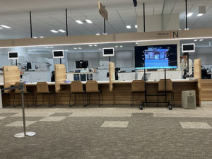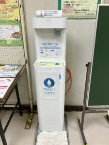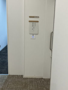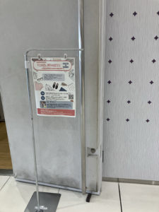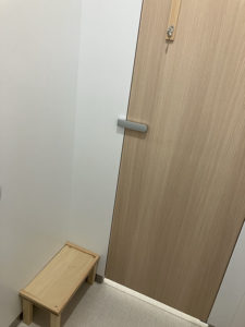 わかりにくいと思いますが…腰かけられるバー、角にはおそらく防災用の椅子のようなBOXがありました。