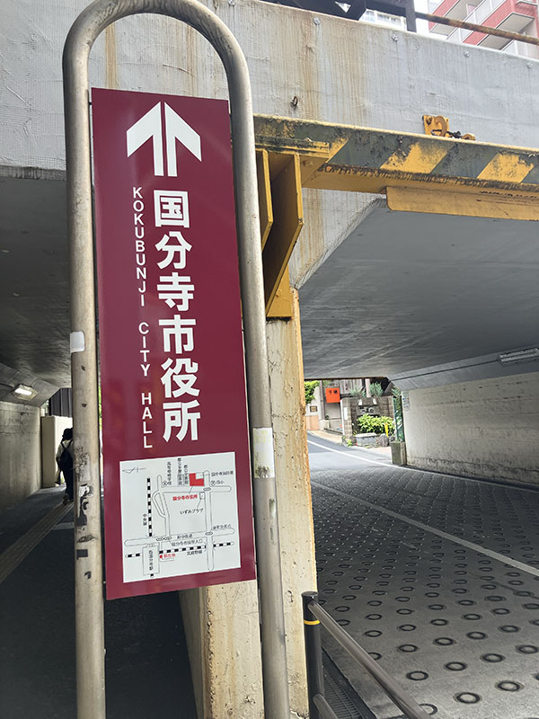 - 西国分寺駅南口出てすぐ左折して、市役所に向かう道路沿いにこのようかわかりやすい案内看板が設置されていました。