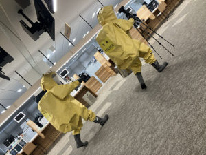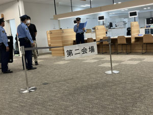 来庁者や職員を人質に、立てこもり事件が発生した際の市民避難誘導訓練が行われました。